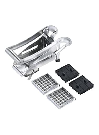 HighlightsMade of 430 stainless steel, quick and sharp to cut French fries and cucumber strips, save both time and effort.Comes with 2 interchangeable blades that in 36-grid and 64-grid for cutting french fries with thickness in 1/2" or 3/8".Bottom with non-slip suction cup to enhance the stability during using.Durable French fry cutter that is in high hardness and good toughness, not easy to get deform.Perfect for cutting potatoes, carrots, cucumbers, or peppers, into strips.