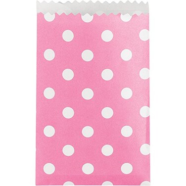 Creative Converting Candy Pink and Polka Dot Treat Bags are perfect for small candy, jewellery or a votive candle. Seal with one of our white, chalkboard or craft labels for a personal touch. Each little favour bag measures 4 inches high and 2.5 inches wide. Comes in 20 pieces pack.