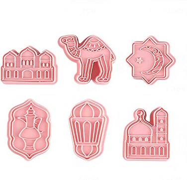 Generic Ramadan Eid Mubarak Cookie Cutters 6 Pcs Biscuit Mold, Mosque, Lantern, Camel, Star, Moon, Islamic Star, Baking Mold Cake Decorating Tool