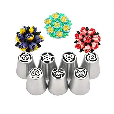 RUSSIAN TIPS: Just a little pressure on the pastry bag, you can create beautiful flowers. Our set provides you with everything you need when to decorate your cake, and it's ideal for both beginners and professional users. You can use our kit to make any cake. TIP SIZE: Upper Dia: 0.9'' ,Bottom Dia: 1.5'', Height: 1.7''. Create entire flowers in one squeeze of the piping bag. MAKE FLOWERS AND LEAVES: Create beautiful Tulips, Roses and other flowers in seconds, complete with Leaf tip, creating stunning floral designs on your cakes and cupcakes. Our Junior “test kitchen” calls them - happy bakes flower nozzles. QUALITY & SAFE MATERIAL: Our kit is made of the highest quality and 100% food grade materials. Made of high quality food grade stainless steel. Sturdy and durable, will not rust. PERFECT GIFT FOR BAKING LOVERS: A unique gift for your family and friends who loves baking, they will love this kitchen tool.