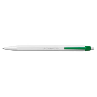 Caran d'Ache 825 ballpoint pen is a superior-quality disposable ballpoint pen. grey-white hexagonal barrel colour-keyed clip push-button retractable design high quality cartridge, smooth and long-lasting archival safe conforms to ISO 12757-1-2 standards - water-proof, fade-resistant, tamper-proof 0.7 mm Made in Switzerland. Colour Green.