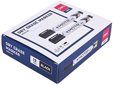 Deli 12pcsBox Black Whiteboard Dry Erase Marker Pens Stationery Office Supplies Refillable Dry Erase Marker with 2mm Bullet Tip Low Odor and Nontoxic