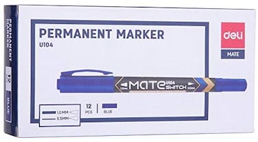 Deli 12pcsBox Blue Whiteboard Marker Pens 2tip Stationery Office Supplies Permanent Marker Fine Bullet Tip Dry Wipe Low Odor NonToxic Intense Color WaterBased Ink Black Marker