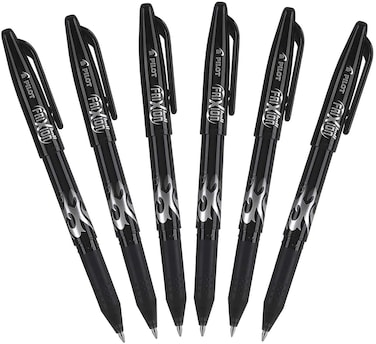 Pilot Frixion Ball 0.7mm Erasable Gel Pens, Fine Point, Black Ink, Pack Of 6