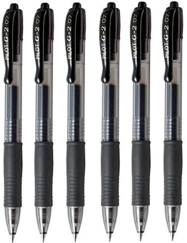 Pilot G2 07 Black Fine Retractable Gel Ink Pen Rollerball 0.7mm Nib Tip 0.39mm Line Width Refillable BLG27 Pack Of 6