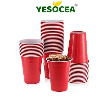 YESOCEA-Plastic Party Cups 16oz - Red Plastic Cups Sturdy Red Plastic Party Cups Birthday Party Cups for All Occasions, 475ml Cups - 50 pieces