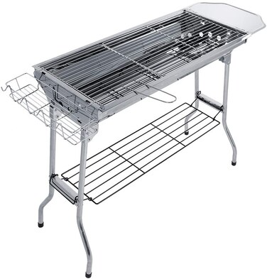 Easy Set-Up: No tools needed, easy to assemble and remove. Just unfolding directly, Then put the grill and the rack up, the charcoal grill can simple set up.