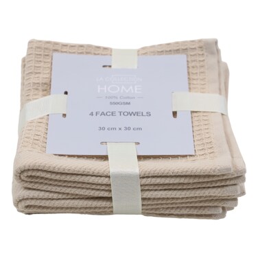 LA Collection 550 GSM Cotton Face Towels Light Beige 30x30cm 4 PCS