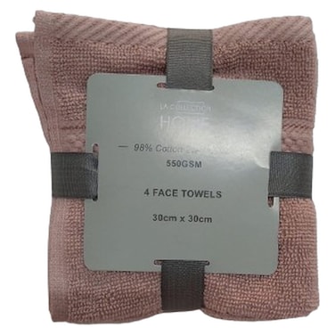 LA Collection 550 GSM Cotton Viscose Face Towels Mid Rose 30x30cm 4 PCS