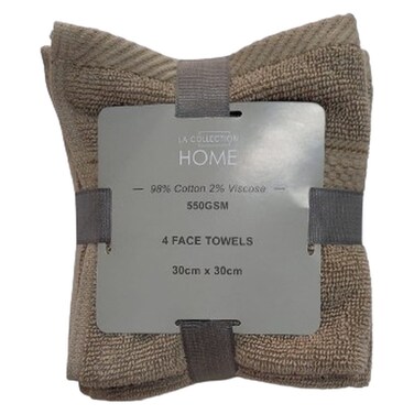 LA Collection 550 GSM Cotton Viscose Face Towels New Taupe 30x30cm 4 PCS