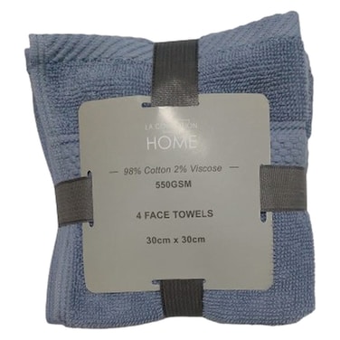 LA Collection 550 GSM Cotton Viscose Face Towels Slate Blue 30x30cm 4 PCS
