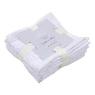 LA Collection 550 GSM Cotton Face Towels White 30x30cm 4 PCS