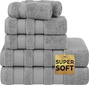 The fluffy towel set is woven with zero twist yarn, thus making it super soft, plush and extra absorbent. The stylish border gives it a sophisticated and luxurious look.