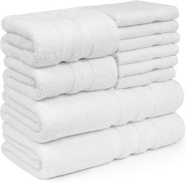 Zofty Set Of 10 Bathroom Towel Set 600 GSM - 2 Bath Towels, 2 Hand Towels and 6 Washcloths - Hotel Quality and Spa Towels, White