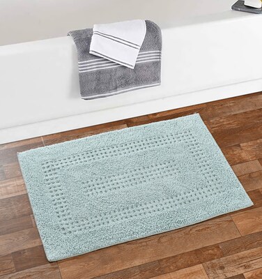 Bring style and comfort to your bathroom decor with this bath mat from the Shemtron Collection. Made from 100% cotton, these mats are highly absorbent keeping your bathroom floor neat and tidy. Create a plush place for you to stand by placing this mat near your bathtub, in front of your bath cabinets and counters.