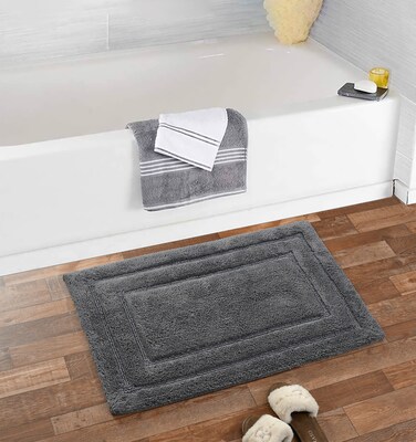 Bring style and comfort to your bathroom decor with this bath mat from the Shemtron Collection. Made from 100% cotton, these mats are highly absorbent keeping your bathroom floor neat and tidy. Create a plush place for you to stand by placing this mat near your bathtub, in front of your bath cabinets and counters.
