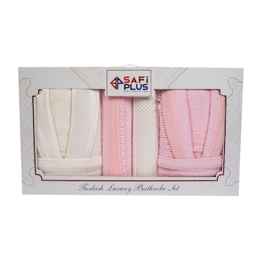 6 Piece Family Bathrobe Set & Towels, Premium Turkish Cotton 2 Bathrobes & 4 Towels in box Matching Couple set (Cream Pink)
