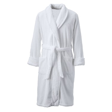 Fabienne Cotton Bathrobe White Size L With 2 Pockets, Belt And Shawl Collar