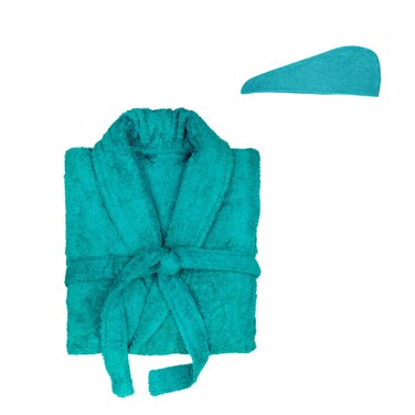Lushh 100% Cotton Shawl Bathrobe for Women with Hair Towel Wrap, Highly Absorbent Terry Bathrobe (L/XL) and Quick Magic Dryer Hair Towel Wrap, Teal
