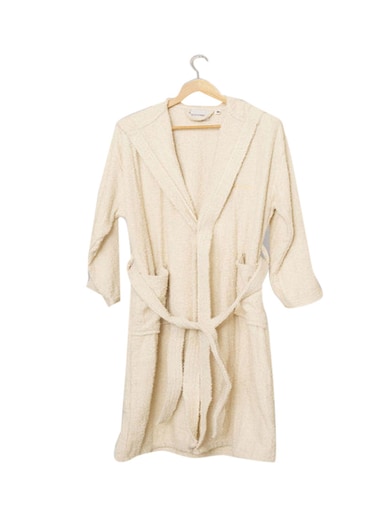 Soft Comfort Hooded Cotton Bathrobe With 2 Pockets, Beige Free Size