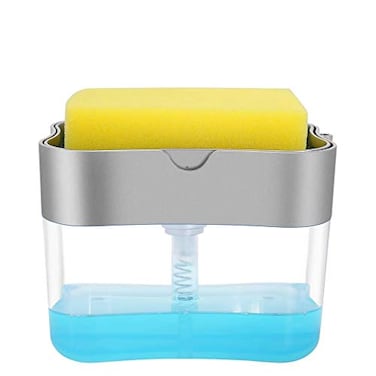 Aeakey Soap Dispenser,Dish Soap Dispenser for Kitchen,Sponge Holder Sink Dish Washing Soap Dispenser 13 Ounces (Silver)