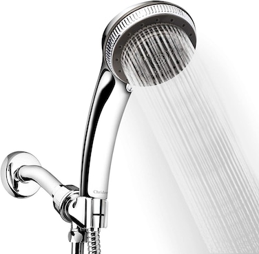 - <li>INSTALL WITH NO TOOL REQUIRED - No need to call a plumber, installs in minutes with just one hand-tighten connection. Fits any standard shower arm. WHAT YOU GET: White box, Handheld Shower, Shower Hose (including silicone washers), Overhead Bracket (sand filter installed), Teflon Tape, Installation Instruction.<li>MULTIPLE MODE ADJUSTABLE SETTINGS - The Chrider 7 functions bathroom shower head will provide you a best shower experience! One power rainfall and two economy rainfall settings, power massage, waterfall mist, spout, oxygenic water flow -- the choice is yours. The waterfall mist will rise the bathroom temperature quickly in Winter.<li>ANGLE - ADJUSTABLE OVERHEAD BRACKET - Durable plastic angle adjustable holder with swivel brass ball joint, control the flow direction will enable you to relax and enjoy a natural SPA at home after a series of working pressure. And, the extra flexible long premium 60 inch stainless steel hose it great for kids, pets and your shower!<li>HIGH QUALITY OF MATERIALS - The Chrider hand held shower head is made with highest quality ABS materials with chrome, making it sturdy and durable, no toxic or lead. Premium quality ABS and POM nozzles ensure you use it safe and comfortable, Electroplate showerhead and electro-polished stainless steel hose makes the appearance bright, glossy and elegant. No rusting or fading.<li>HIGH PRESSURE WATER FLOW - Effortlessly provides superior water pressure, 2.5 GPM water flow control also will save your money for water. And we have a great customer support. If you are not satisfied with our product, please give us a chance to make it right and we will try our best to solve your problem.