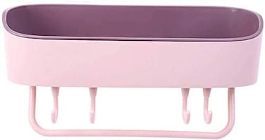 - Smooth edge, protect from hurting, Holes in the bottom, drain water, keep drying. High quality ABS plastics, eco-friendly, durable. Double sucker design, fits to most smooth surface. For universal use in the shower cubicle, in the bathtub corner or in the bathroom. Size: 2710.56.5cm Kitchen Bathroom Wall Shelf with Towel Holder with 4 Hook