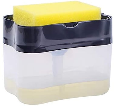 <li></b>Color:Black<li>Specifications:<li>Material: ABS<li>Color: Blue, Pink, Black<li>Size: about 15X13X10 cm<li>Feature£º<li>Cleaning dishes is about to get a whole lot faster with this Soap Pump & Sponge Caddy.<li>Fill it up with 13oz of your favorite dish soap, then use the included sponge to press down on the pump, which dispenses the perfect amount of dish soap up onto the sponge.<li>When you need more, just pump again for another shot of soap. No more stopping to grab the soap bottle. Any other sponge or scrubber will work with it too!<li>INNOVATIVE DESIGN, HIGH QUALITY, LONG LASTING & RUSTPROOF Finally! Unlike other traditional dispensers, this 2-in-1dishwasher soap dispenser is designed to be superior, made of unbreakable ABS plastic making it long-lasting.<li>INSTANT 2-IN1 DISPENSER + Caddy, 1 HAND OPERATION, COMPACT ORGANIZATION: Sink dispenser with attached caddy holds sponges, scrubbers, rags, scouring pads in one convenient place while keeping water off of kitchen counters.<li>PRECISE, EFFORTLESS DISPENSING & LARGE CAPACITY: Dispense the perfect amount of soap onto the sponge, extremely easy to use.<li>The container has a large capacity of 13 ounces so that you don¡¯t need to refill it frequently. Works with all kind of liquid soaps.<li>VERSATILE USE ¨C Best for home, school, office, hospital, hotel, restaurant, factories, airport, gas station, and so on. Ideal for commercial and public Places.<li>SAVE MONEY, SPACE and TIME! This dishwashing dispenser will totally transform your kitchen life, designed to wash dishes FASTER, the instant operation will save your Time and 1 hand operation will keep your ENERGY level always high.<li>Package Included:<li>1 X 2-in-1 soap dispenser and sponge caddy<li>1 X sponge