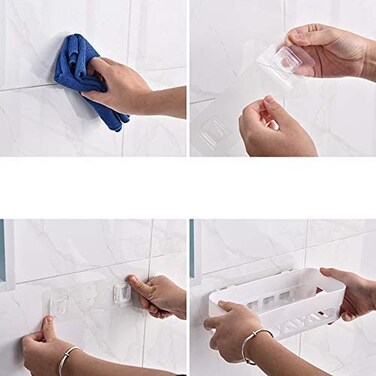 - <p>STRONG ADHESIVE DETACHABLE SHELF - The powerful adhesive could stick strongly, ensuring the shower basket durability and dependability. The strong bearing capacity can meet your needs to put heavy things like shampoo and body wash on the shelf. If you tear off the adhesive, the shower caddy can be recycled and reuse.<p>NO DRILLING NEEDED - No Screws, No Nails, No Tools. This prevents any damage to your wall and allows for flexibility to relocate.Easy to install, you just need to peel off the cover and put the adhesive and caddy on the cleaned smooth hard wall within 3 minutes.<p>SPACE-SAVING BASKET - Dimensions 30137cm<p>It's perfect to keep your bathroom neat and beauty. Ideal for bathrooms and kitchen storage of shampoo, conditioner, cosmetics, spices and so on. Easy stick on smooth hard walls, such as cement wall, ceramic tile, glass and so on. But don't stick on Painted walls or Wallpapers<p>DRAIN FAST DESIGN - Hollow strips and ventilation design to make water drain fast, keep your bathroom products dry and clean.<p>material:plastic white30137cm