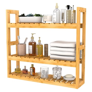 - Bamboo shelf fits in small spaces where you may struggle to find storage solutions
