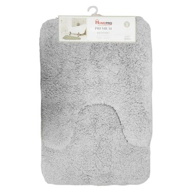 Upgrade your bathroom with the Home Pro Premium Bath Mat in a stylish light grey colour. This set includes 2 pieces, perfect for adding a touch of luxury to your space.