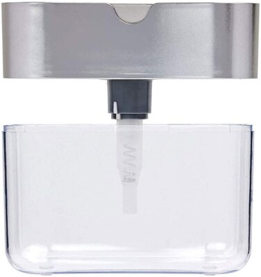 - 2-in-1 Sponge Rack Shelf Soap Detergent Dispenser Pump Large Capacity with Sponge 1 Hand Operation (B, 5.1X3.35X3.5 Inches)