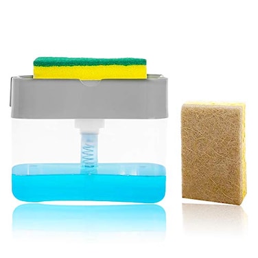 Soap Pump Dispenser Sponge Holder andDishcloth Cellulose Sponge Cloths,Kitchen Dish Soap Dispenser + Sponge Holder 2-in-1,Good Grips Soap Dispensing Sponge Holder,13 Ounces