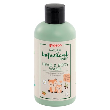 - Pigeon natural botanical baby head and body wash contains argan, olive and chamomile extracts