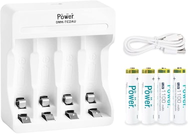 DMK Power 4pcs AAA Rechargeable 1100mAh High Capacity Batteries 1.2V NiMH Low Self Discharge with 4 Independent Slot USB Charger for AA AAA NiMh rechargeable Batteries