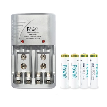 DMK Power 4pcs AAA Rechargeable Battery with Smart Rechargeable Charger for AA AAA NiCd 9V NiMh Batteries for House hold devices, toys, remote, etc...