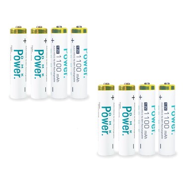 DMK Power 8 Pcs Rechargeable AAA Batteries ,1100mAh High Capacity Batteries 1.4V NiMH Low Self Discharge for House hold devices, toys, remote, etc...