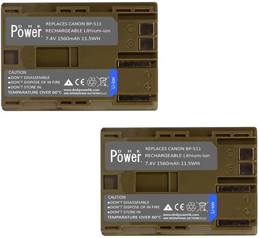 DMK Power BP-511(1560mAh) 2-Pack Batteries Compatible with Canon EOS 5D, 50D, 40D, 20D, 30D, 10D, Digital Rebel, 1D, D60, 300D, D30, Kiss, Powershot G5, Pro 1, G2, G3, G6, G1, Etc