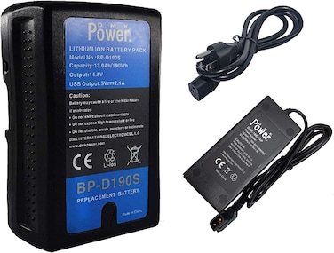 DMK Power BP-D190S V Mount V Lock Battery (190Wh, 14.8V, 13000mAh) Li-ion Battery with D Tap Fast Charger for Broadcast Video Camcorder Strobe LED Video Lights Digital Cinema Cameras