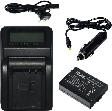 Battery Specifications - Energy Storage Capacity: 1350mAh /Voltage: 7.4 volts/ WH: 10.0Wh - New fully decoded chip works just like the original.(gives time left and does not need a special charger) 100% Safety Guarantee: Built with multiple circuit protection (over-charging, short-circuit, high-temperature, and surge protection), and high-quality, fire-resistant construction Specification: RAPID CHARGERShort Circuit ProtectionAC Input: 110-240V (50~60 Hz)DC Input: 12V (Car charger)DC Output: 3.6~8.4V ( for camera batteries)Current: DC 1000mahUSB Output: 5V 1000mah (for mobile phone batteries, PSP batteries etc.)Weight: 242gram COMPATIBILITY : LP-E10 Li-ion Battery for Canon EOS Rebel T3, T5, T6, T7, Kiss X50, Kiss X70, T100, EOS 1100D, EOS 1200D, EOS 1300D, EOS 1500D, EOS 2000D, EOS 3000D EOS 4000D Digital Cameras