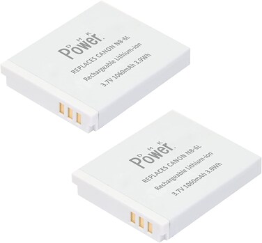 Specifications: Battery Model: Replaces Canon NB-6L Voltage & Capacity: 3.7V 1060mah 3.9Wh Battery Type: Lithium-ion (Li-ion) Rechargeable Battery Color: Black. 100% Compatible with Canon SX710 HS, SX530 HS, SX520 HS, SX510 HS, SX500 IS, SX700 HS, SX280 HS, SX260 HS, SX170 IS Black, SD1300 IS, SD1200 IS, SD980, SD770, SD1300,D30, D20, D10, IXUS 85 IS, IXUS 95 IS, IXUS 200 IS Cameras Package Includes: DMK NB-6L Battery---2Pcs