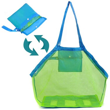 Foldable: This mesh beach bag can be folded into a small bag and then put into a suitcase, wallet or car without taking up space. Just turn on the button to stretch to a large beach bag in 5 seconds and easy to use.