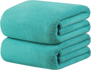 2-Pc Microfiber Bath Sheet Turquoise 80x160cm Soft Microfiber Beach Towel Super Absorbent, Fast Drying and Durable Microfiber Bath Towel