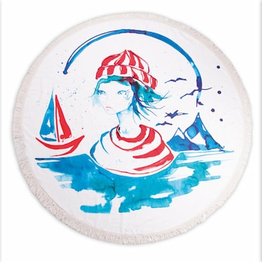 - BiggDesign AnemosS Sailor Girl Patterned Round Beach Towel - White 60% Cotton 40% Micro Fabric. Diameter: 150 cm, Weight: 340 gr / m2 Round beach towel with the pattern of Sailor Girl by Gamze Yalçın. The product is 150 cm in diameter. Multi-color printed and fringed ends. You can use the product on the beach and at the pool. If you wish you can combine with other appropriate parts of the collection.