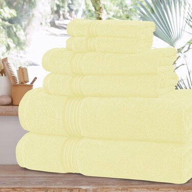 Extra Soft and absorbent– Our towels are made using high-quality 100% cotton. The cotton fibers utilized ensure optimum softness, fluffiness, and wonderful absorbency. They get fluffier and softer with each wash. Premium Quality- It's made with exceptional quality fabric that is significant in absorbance. Versatile Use: While it's perfect for the beach, our luxury towel is also a versatile accessory for picnics and boating, and as a chic addition to your bathroom. It's designed to be your trusted companion, whether you're by the water or at home. 6-Piece 100% Combed Cotton 600 GSM Quick Dry Highly Absorbent Thick Bathroom Soft Hotel Quality For Bath And Spa Towel Set Includes 2xBath Towels (70x140 cm), 2xHand Towels (40x70 cm), 2xWashcloths (30x30 cm) These are light-weighted to offer your body a delicate feel whereas retaining the moisture Our towels are extremely soft, durable and free from rough texture of the standard raw cotton These are made with highly absorbent, natural 100% combed cotton. Does not contain any dangerous dyes, and hazardous chemical. Our towels provide you with quick moisture absorbency and fast drying.