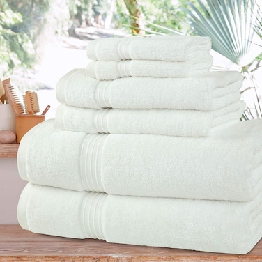 Extra Soft and absorbent– Our towels are made using high-quality 100% cotton. The cotton fibers utilized ensure optimum softness, fluffiness, and wonderful absorbency. They get fluffier and softer with each wash. Premium Quality- It's made with exceptional quality fabric that is significant in absorbance. Versatile Use: While it's perfect for the beach, our luxury towel is also a versatile accessory for picnics and boating, and as a chic addition to your bathroom. It's designed to be your trusted companion, whether you're by the water or at home. 6-Piece 100% Combed Cotton 600 GSM Quick Dry Highly Absorbent Thick Bathroom Soft Hotel Quality For Bath And Spa Towel Set Includes 2xBath Towels (70x140 cm), 2xHand Towels (40x70 cm), 2xWashcloths (30x30 cm) These are light-weighted to offer your body a delicate feel whereas retaining the moisture Our towels are extremely soft, durable and free from rough texture of the standard raw cotton These are made with highly absorbent, natural 100% combed cotton. Does not contain any dangerous dyes, and hazardous chemical. Our towels provide you with quick moisture absorbency and fast drying.