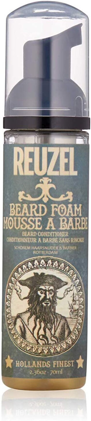 Reuzel Beard Foam The Reuzel Beard Foam is a specially designed beard conditioner that is very easy to use thanks to its foamy consistency and is also extremely efficient. It is completely absorbed into the skin and the hair, so no need to wash out. The beard hair is nourished from the root to the tip and moisturised. The hair is strengthened overall and the beard maintains a nice volume. Application of Reuzel Beard Foam by pumping a small amount (is very efficient!) Apply Reuzel Beard Foam to the palm, spread between hands and massage evenly into the beard from the root to the tip. The skin can also be massaged in a neat way. That's it. After a few minutes, the foam is retracted and nourishes hair and skin.
