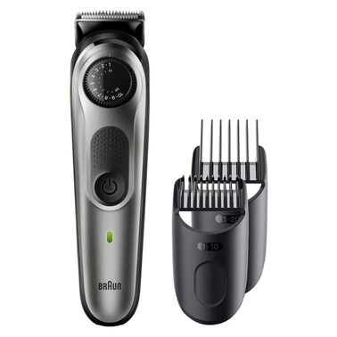 Sharper faster more efficient vs. all previous generations of Braun beard trimmers. Precision dial for 39 length settings in 0.5 mm step sizes for an effortless trimming experience. Lifetime Sharp Blades for even beard trimming and hair clipping. Create accurate lines and edges on neck and cheek with the main beard trimmer head. German technology and ergonomic build delivering 100 mins of cordless trimming on 1 hour charge.