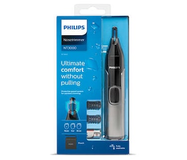 The Philips nose trimmer series 3000 comfortably trims nose, ear and eyebrow hair. The new PrecisionTrim technology & the Protective Guard system have been designed to provide an easy and efficient trim without all the pulling and tugging.