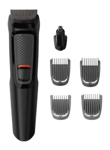 Philips Multigroom Series 3000 6 In 1 Face Shaver, Black, MG3710/15 (Rectangle, Stainless Steel, Beard, Ear, Eyebrow, Nose, 60 Min, Integrated)
